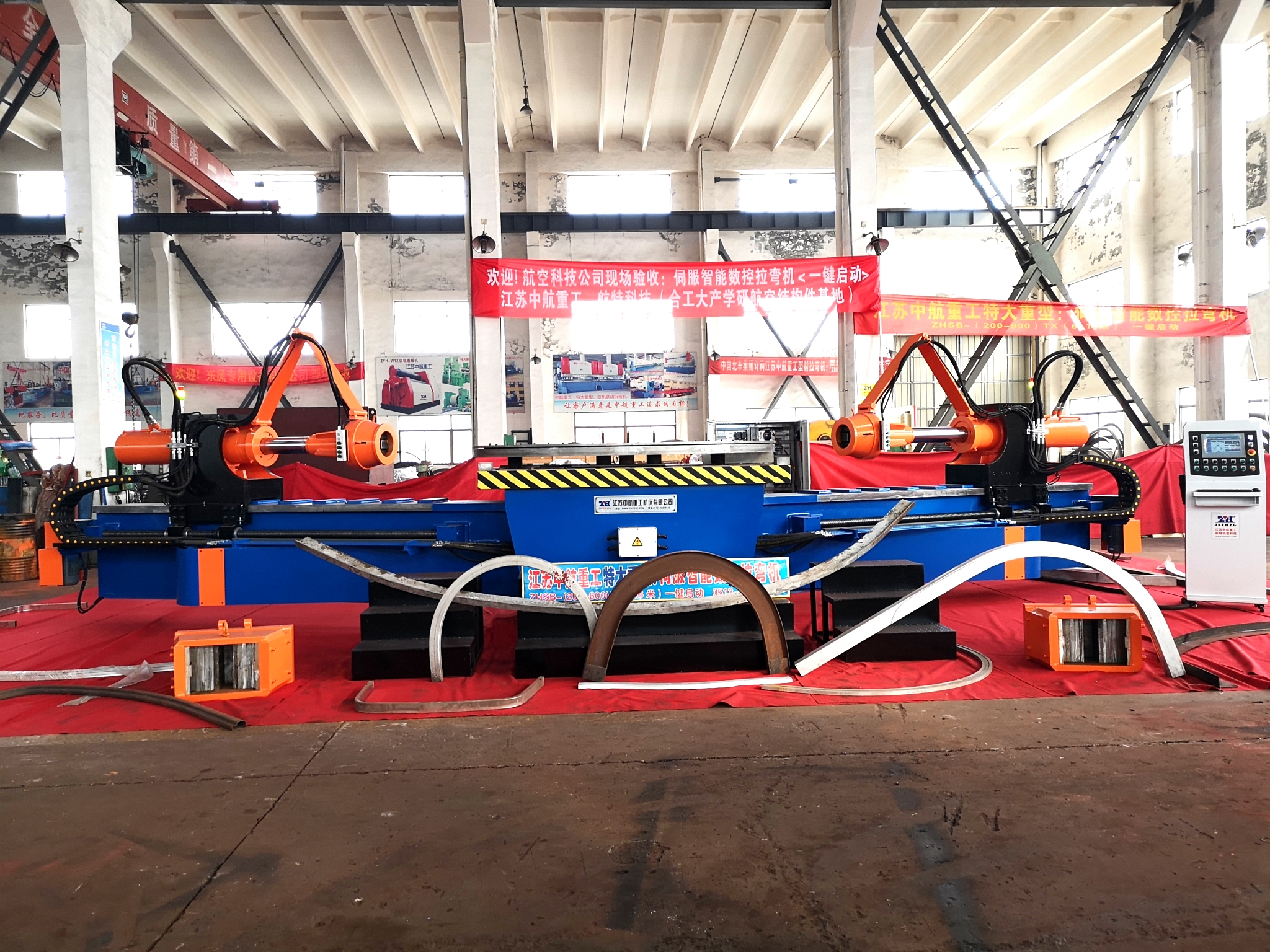 航空科技公司來我企業(yè)來驗(yàn)收大型拉彎機(jī)設(shè)備